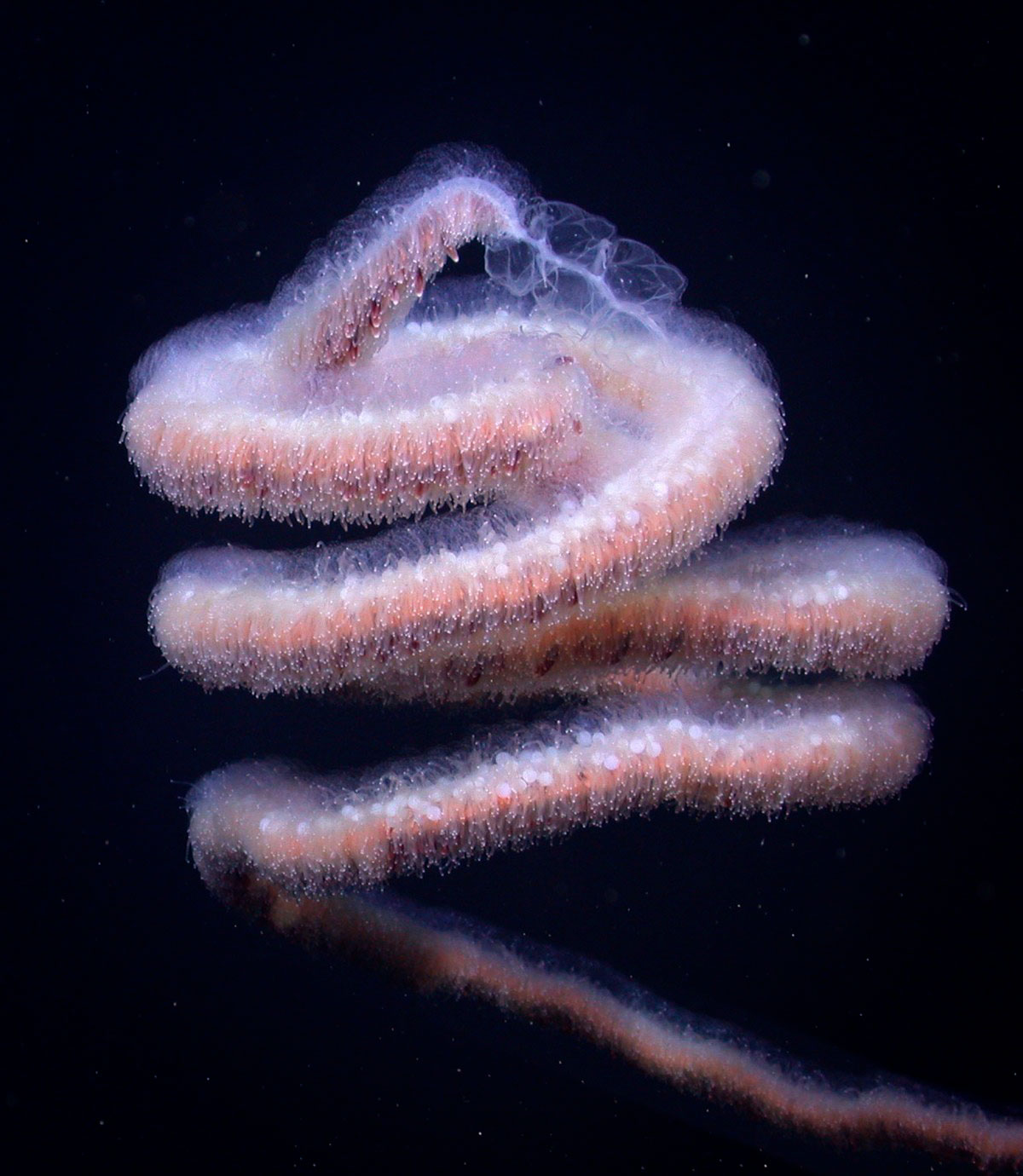 Predators often use beauty to their advantage. The Siphonophone (above) is an exotic creature, even to it’s prey. Spiralling itself across a large area to attract whatever may pass, it invites curiosity and investigation. Each tentacle can sting, sedate and consume. There is no warning here, only beauty.
